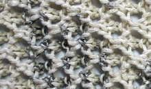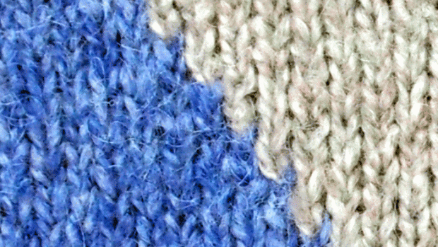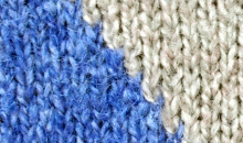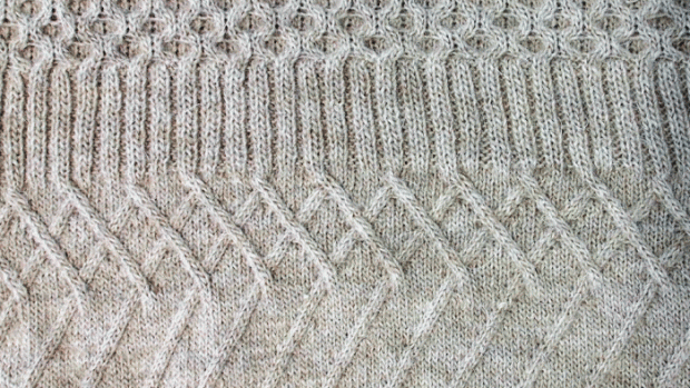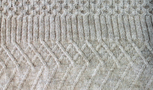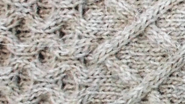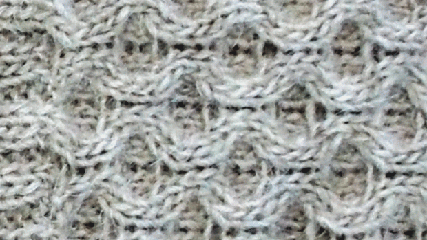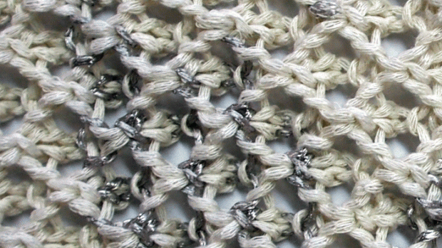 Detall de punt ample amb tons platejats de Highknit, fet a partir d’una galga n. 5.